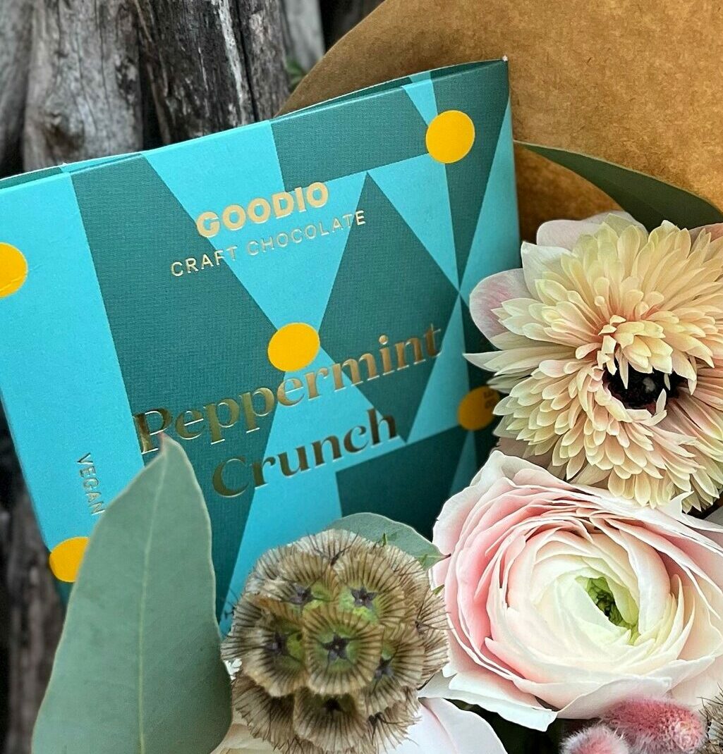 Peppermint crunch:  Smaka på de pepparmyntade björksockerkristallerna ovanpå den finaste hantverkschokladen. Sval och krispig som den första vinterisen.
