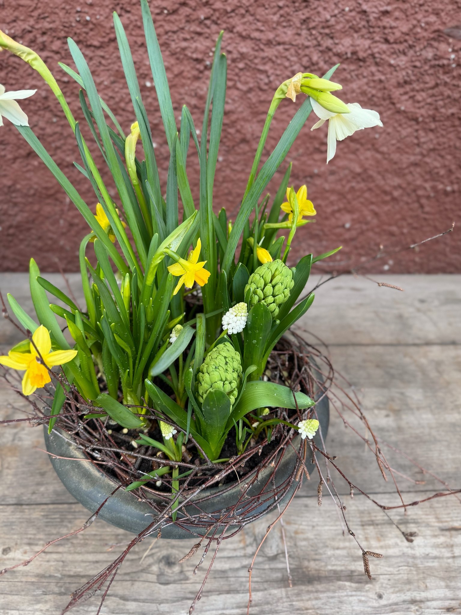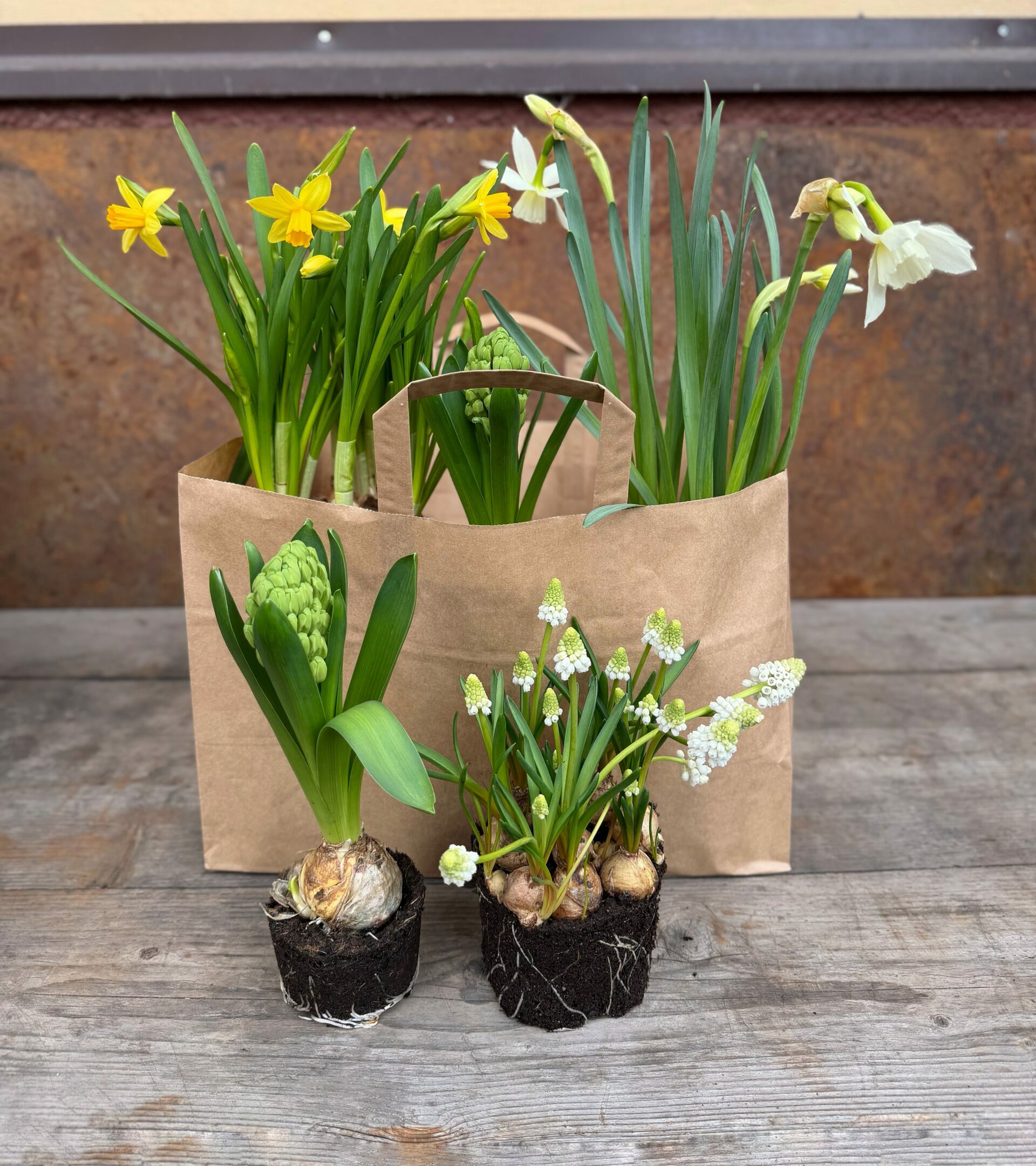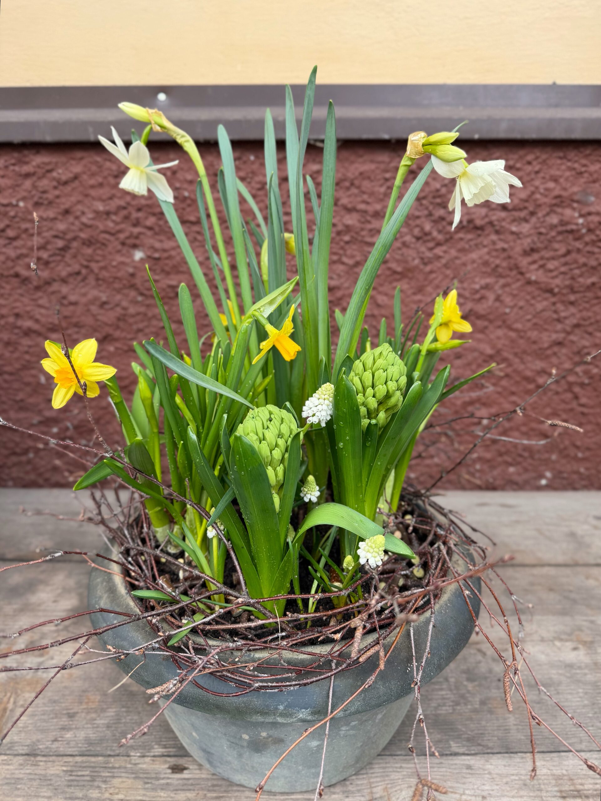 Gör fint på utsidan till påsk med vår påskkasse. I påskkassen finns lökväxter i påskens färger, gult och vitt. Den innehåller vit narciss ‘Thalia’, vit pärlhyacint, gul tete-a-tete och 2 gula hyacinter.